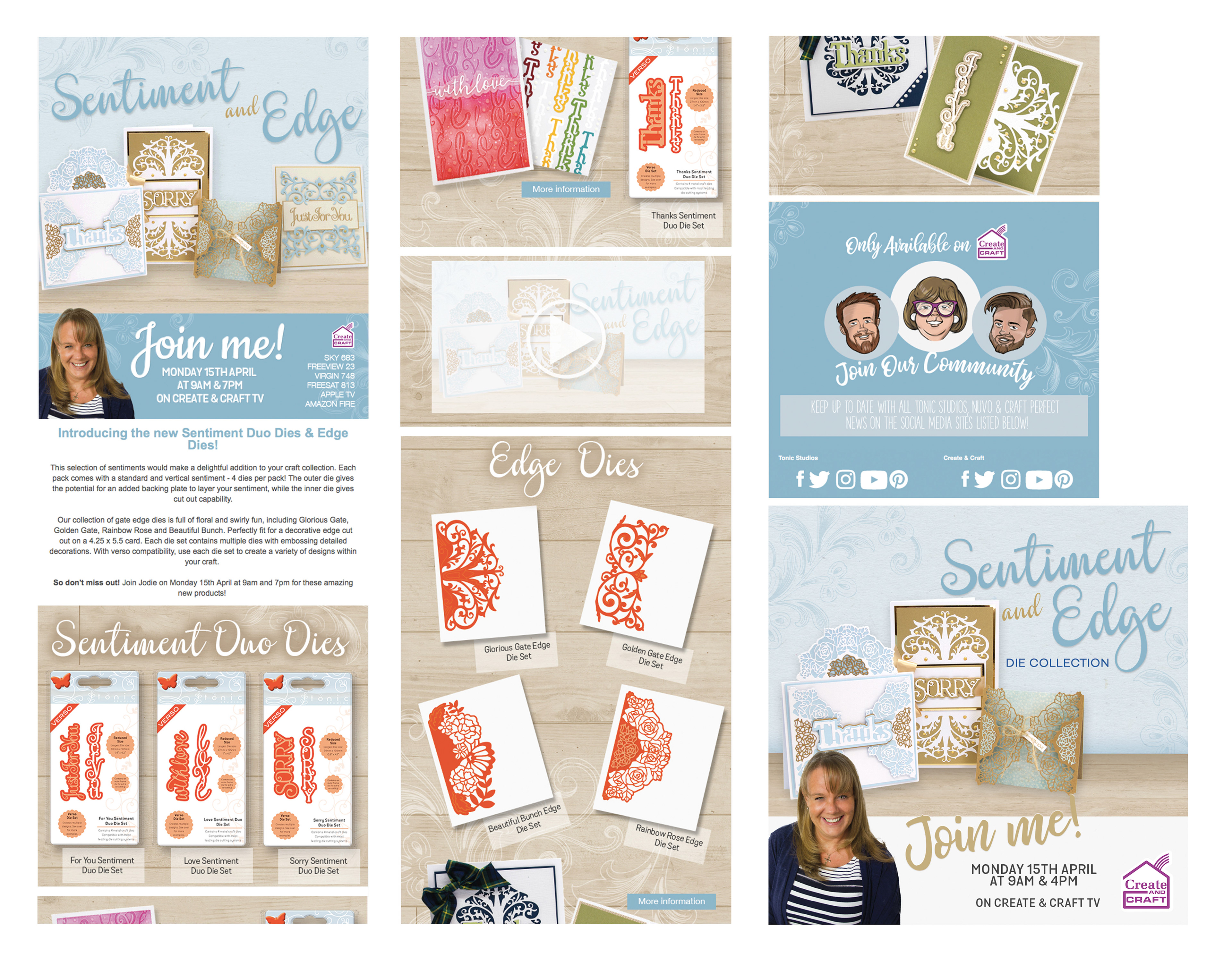 The brief To design an email and accompanying social media posts to show off the dies that are being showcased on our TV networks (Hochanda and Create & Craft TV). Designed in Photoshop and uploaded and sent via Mail Chimp.